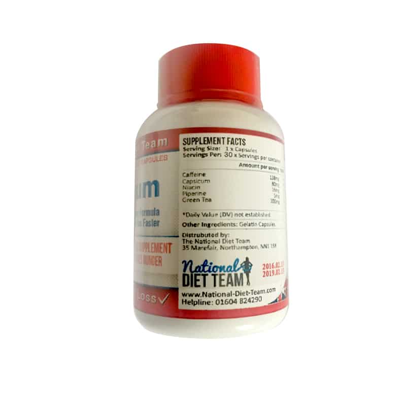Fiecare ambalaj conține 30 capsule (300 mg). Contin extract de ardei iute (capsaicina) – 39,5 mg, Seine – 15,9 mg, Erica – 11,8 mg, L-carnitină – proteină 11,8 mg – <0,2 g grăsime – <0,2 g, glucide – <0,2 g și energie – 4kcal.